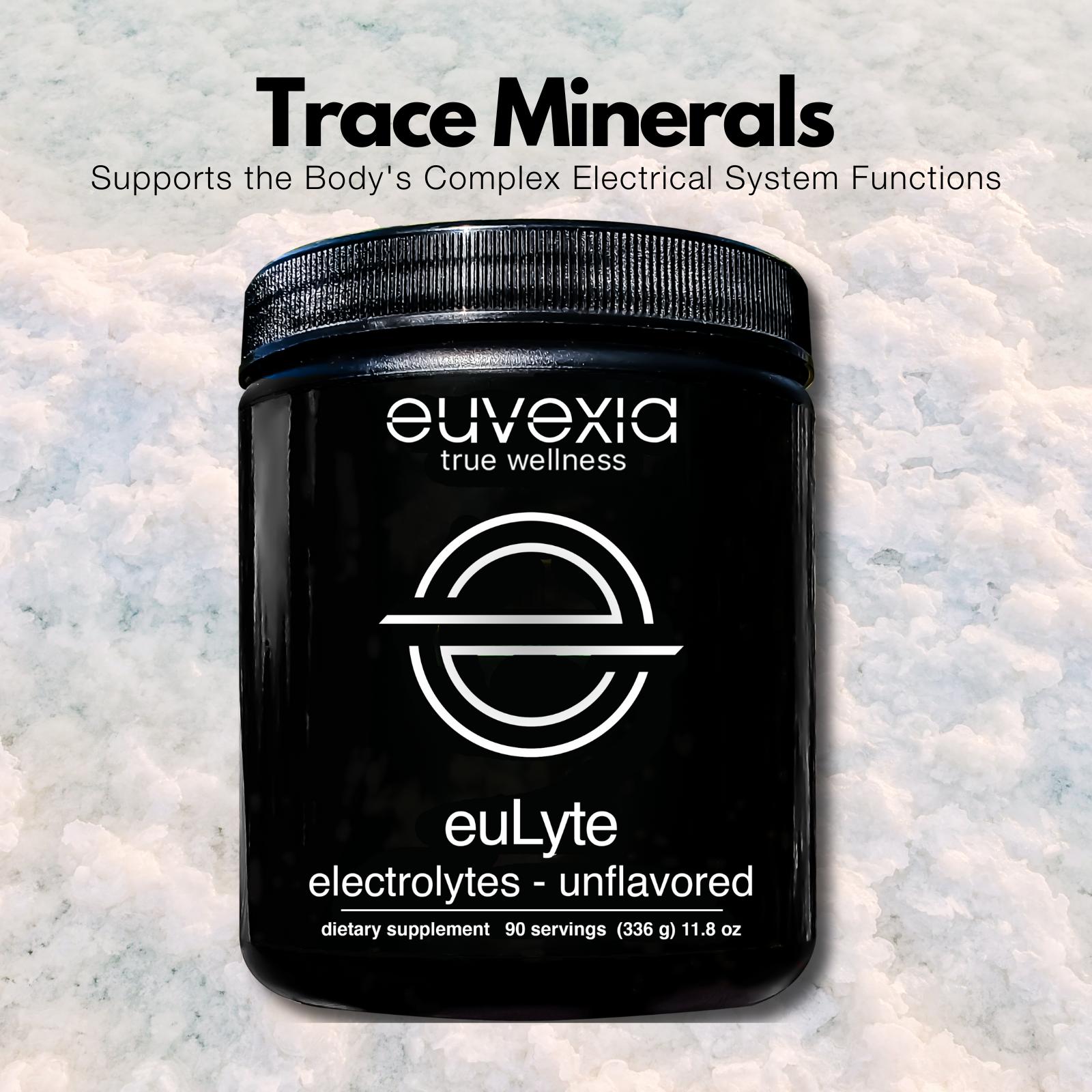 Whether euLyte can replace your current mineral supplements depends on your dietary intake, health needs, and specific supplement goals. Key Points About euLyte: Broad Mineral Support: euLyte provides essential minerals like zinc L-carnosine, manganese, calcium, and deep ocean trace minerals. These nutrients support hydration, muscle recovery, immune health, and overall mineral balance. Convenient & Balanced: Designed to complement a healthy lifestyle, euLyte is a convenient way to maintain essential mineral levels, especially if you're physically active or need extra hydration. Consider Your Diet Your daily diet is a key factor in determining whether euLyte can replace other supplements. For example: Rich in Whole Foods: If you consume a balanced diet with vegetables, fruits, nuts, seeds, and lean proteins, you may already get many essential minerals. In this case, euLyte can serve as a complement to your diet for additional support. Deficiencies in Diet: If your diet lacks variety or key food groups (e.g., seafood for iodine or leafy greens for magnesium), euLyte can help fill those gaps. However, certain deficiencies may still require targeted supplementation. Dosage & Specific Needs euLyte is designed for general mineral support and hydration, but it may not match therapeutic doses of specific minerals prescribed by a healthcare provider. For instance, if you need higher levels of magnesium, selenium, or iron, you may still need separate supplements. Consult A Practitioner Before replacing your supplements, consider speaking with a healthcare provider. They can help you assess: Your current diet and nutrient intake. Blood work or testing to identify deficiencies. The specific minerals you need in therapeutic doses. Diet + euLyte = Balanced Wellness euLyte is an excellent addition to a healthy lifestyle, especially when paired with a diet rich in nutrient-dense foods. Together, they can help you maintain optimal hydration, mineral balance, and overall wellness.