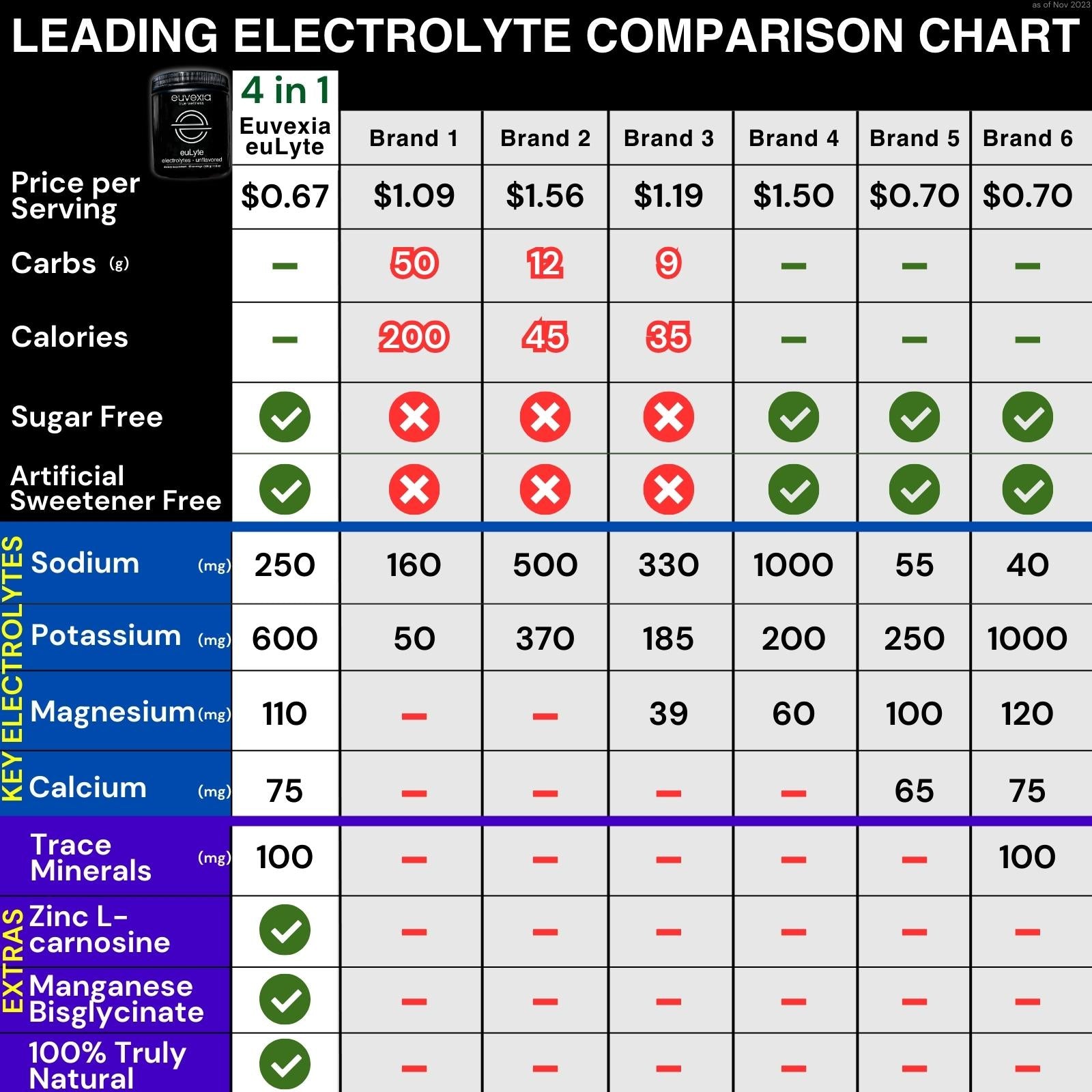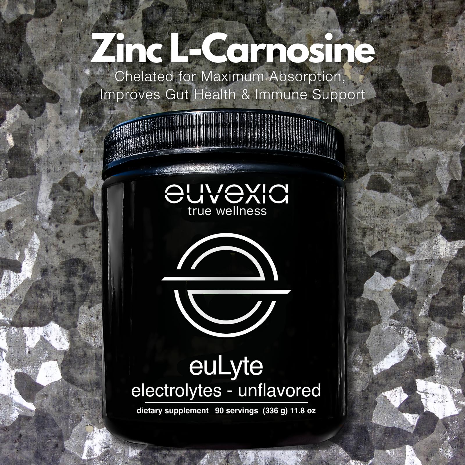 euLyte is the broadest formulation of any electrolyte powder it is also the only one that has truly natural colorings and flavorings as well as the added bonus of zinc L-carnosine and manganese bisglycinate for tissue healing support and blood sugar regulation during fasting.
